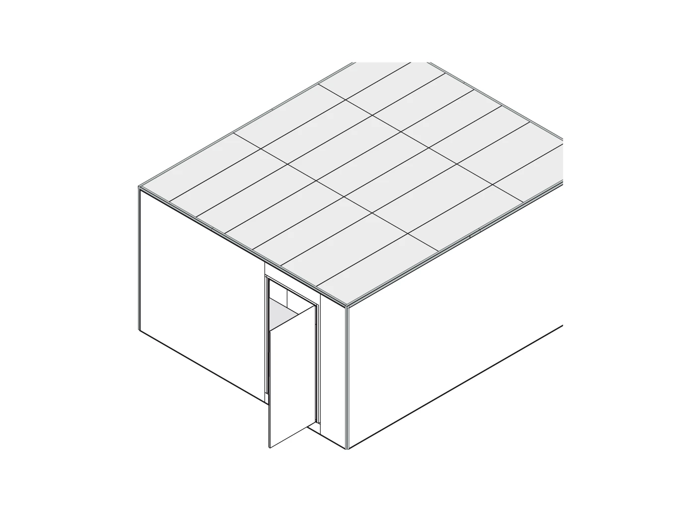 Local individuel résistant au feu, composé d'éléments individuels incombustibles de 42 mm d'épaisseur : mur, plafond, barrière coupe-feu, cloisons et éléments de ventilation.